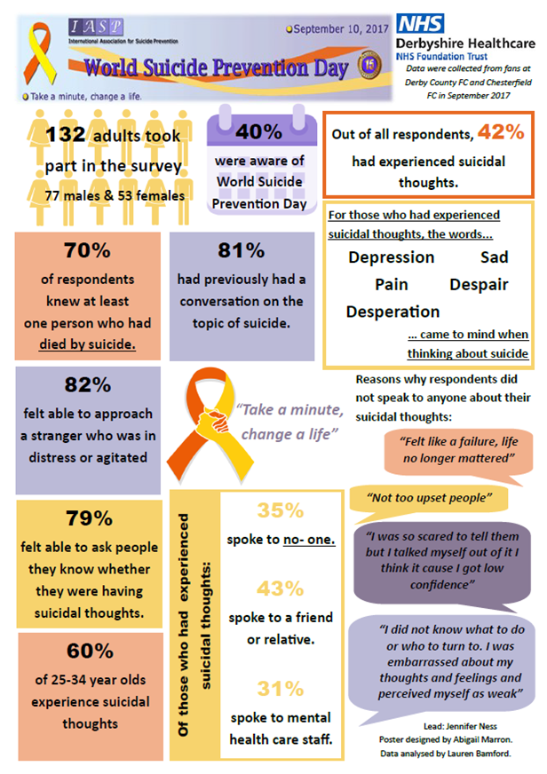 - 2018 ‘Working together to prevent suicide’ events at Derby County FC, Chesterfield FC, Alfreton FC and Belper Town FC.